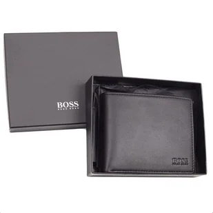 Hugo Boss czarny portfel męski skórzany Asolo pudełko bilon