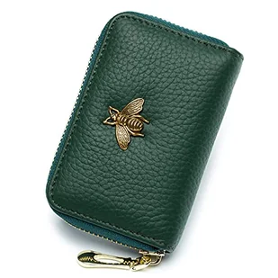 imeetu Portfel na karty, RFID, etui na karty kredytowe dla kobiet, smukłe, skórzane, damskie etui na karty z 12 przegródkami na karty i 2 szerokimi przegródkami na gotówkę (mały, zielony)