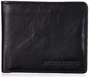 Jack&JONES Men's JACSIDE skórzany portfel na karty, czarny, jeden rozmiar