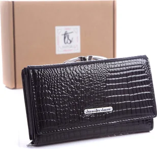 Specyfikacja: Portfel wykonany ze skóry naturalnej, lakierowanej,Pojemny model niemieckiej marki Jennifer Jones, z zewnątrz stylizowany na błyszczącą skórę krokodyla,Portfel posiada dwie przestronne, oddzielne kieszenie na bilon - jedną zapinaną na zamek, drugą na bigiel - dzięki temu stanowi idealny wybór dla osób poszukujących portfela do przenoszenia np. dwóch walut,8 kieszonek na karty kredytowe,Kieszonka transparentna na zdjęcie bliskiej osoby lub dokument tożsamości,3 szerokie kieszonki na karty owe lub dokumenty,Przegroda na banknoty. Portfel z ochroną kart RFID. Blokuje ona dostęp do kart zblizeniowych umieszczonych wewnątrz portfela.