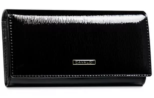Klasyczny pojemny portfel damski z lakierowanej skóry naturalnej portmonetka Cavaldi, czarny
