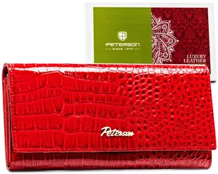 Klasyczny portfel damski skórzany PETERSON czerwony fakturowany RFID STOP Elegancki portfel damski Peterson® #️⃣ Polska marka | Produkt cenionej marki Peterson®, która z ogromnym powodzeniem działa na rynku galanterii skórzanej. #️⃣ Wyjątkowy design | Portfel o oryginalnym stylu z motywem gadziej skóry. To doskonały dodatek, który dopełni Twoje stylizacje. #️⃣ Najwyższa jakość wykonania | Odszyty ze specjalnie wyselekcjonowanej skóry naturalnej, która gwarantuje jakość na lata. #️⃣ Pojemny i funkcjonalny | Liczne przegródki i kieszonki, które pozwolą Ci przechowywać pokaźną ilość kart i gotówki.