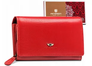 Klasyczny, skórzany portfel damski na zatrzask — Peterson Zawsze modny fason | Portfel o klasycznej stylistyce w klasycznym czerwonym kolorze. Model w orient...