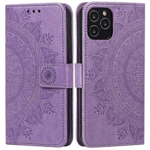 Kwiat mandali z nadrukiem PU skórzany magnetyczny portfel TPU Wewnętrzna osłona stojaka Flip Folio z paskiem kompatybilna z iPhone 12/12 Fioletowy