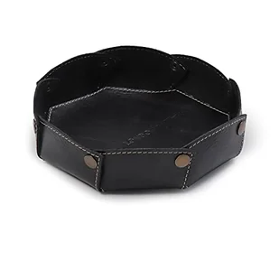 LONDO Okrągły organizer na tacę z prawdziwej skóry - praktyczne pudełko do przechowywania portfeli, zegarków, kluczy, monet, telefonów komórkowych i sprzętu biurowego (czarny)