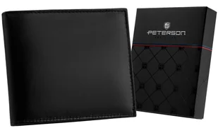 PETERSON męski portfel skórzany na prezent RFID Skórzany portfel męski PETERSONⓇ w orientacji poziomej #️⃣ Wykonany ze skóry naturalnej | Odszyty bardzo trwale z doskonałej jakości skóry naturalnej w głębokim czarnym kolorze #️⃣ Klasyczny fason dla Panów w każdym wieku | Portfel o uniwersalnej, ponadczasowej stylistyce. Model w orientacji poziomej bez zapięcia zewnętrznego #️⃣ Pojemny i funkcjonalny | Portfel będzie dla Ciebie idealny, jeżeli potrzebujesz dużej ilości przegródek, aby rozlokować swoje karty i dokumenty #️⃣ Bezpieczny | Wyposażony w technologię RFID BLOCKING SYSTEM, która zabezpiecza karty zbliżeniowe, dokumenty biometryczne, legitymacje i karty komunikacji miejskiej przed nieautoryzowanym odczytem danych Parametry ☑️ Producent: PETERSON® ☑️ Materiał: skóra naturalna ☑️ Kolor: czarny ☑️ Wysokość: