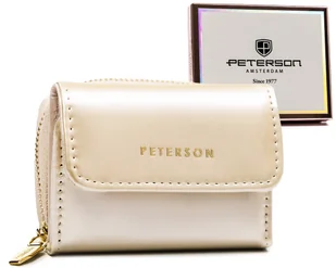 Mały portfel damski lakierowany z ochroną RFID skóra ekologiczna portmonetka na suwak Peterson, beżowy