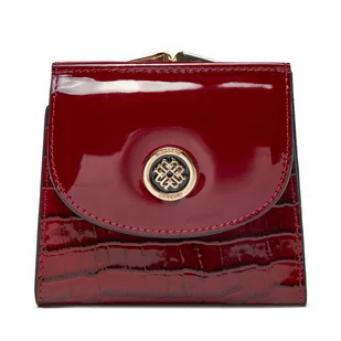 Portfel damski lakierowany PETERSON duży na zatrzask i suwak rozbudowany na karty elegancki na prezent czerwony