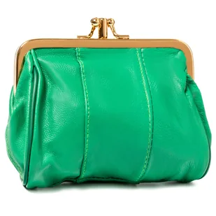 Mały portfel damski na bilon portmonetka na bigiel zielony skóra naturalna elegancki prezent