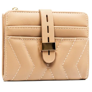 Mały portfel damski lakierowany z ochroną RFID skóra ekologiczna portmonetka na suwak Peterson, beżowy