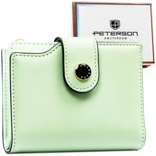 Portfel damski z ochroną kart RFID w pudełku na prezent ze skóry eko Stylowy portfel damski Peterson®️ #️⃣ Renomowana marka | Oryginalny produkt od znanej polskiej marki Peterson®, cenionej za jakość, precyzję wykonania i ponadczasowe wzornictwo. #️⃣ Wysoka jakość wykonania | Portfel został wykonany z trwałej skóry ekologicznej, dzięki temu prezentuje się luksusowo i zachowuje swój wygląd przez długi czas. #️⃣ Funkcjonalne wnętrze | Starannie zaprojektowany układ przegródek pozwala z łatwością uporządkować karty, dokumenty, banknoty i bilon. Wszystko ma swoje miejsce – szybko znajdziesz to, czego potrzebujesz. #️⃣ Podwójne zapięcie dla wygody | Portfel posiada dwie oddzielne sekcje, zabezpieczone zatrzaskiem i zamkiem błyskawicznym, co zapewnia maksymalne bezpieczeństwo i komfort użytkowania.