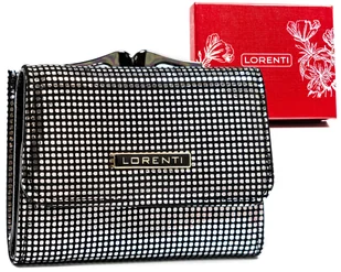 Mały portfel damski z cekinami skórzana portmonetka na bigiel Lorenti, czarny