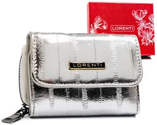 Mały portfel damski ze skóry naturalnej portmonetka na suwak ochrona RFID Lorenti, srebrny