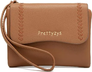 Mały portfel z haftem z kieszenią paskiem na rękę dla kobiet suwak brązowy