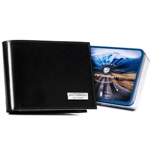 Męski skórzany portfel Peterson na dokumenty praktyczna portmonetka na karty z ochroną RFID, czarny