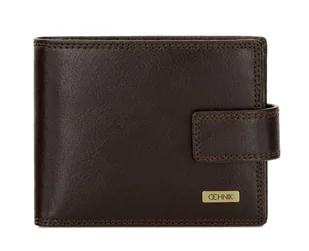 SKÓRZANY PORTFEL MĘSKI SL-105 Portfel męski wykonany z wysokiej jakości, naturalnej skóry bydlęcej w kolorze brązowym. Wewnątrz 2 kieszenie na banknoty, 1 na monety zamykana na zatrzask, 4 miejsca na karty kredytowe oraz 3 dodatkowe kieszenie. Całość zamykana na pasek z zatrzaskiem.