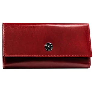PETERSON Duży pojemny czerwony portfel damski ze skóry naturalnej schowek na suwak rozbudowany na karty dokumenty i gotówkę pudełko prezentowe ochro..