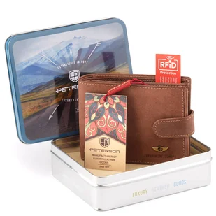 Rozbudowany, duży, klasyczny portfel męski, z technologią RFID BLOCKING SYSTEM, chroniący karty zbliżeniowe przed kradzieżą danych, solidnie i starannie wykonany z doskonałej jakości skóry naturalnej typu nubuk.