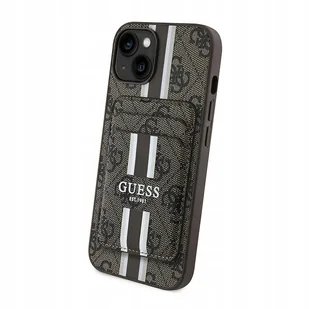 Plecki Etui Guess 4G Stripes z portfelem Magsafe do iPhone 15 brązowy