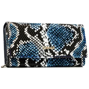 Damski portfel marki Cavaldi wykonany jest ze skóry naturalnej z fakturą skóry węża, co nadaje mu ekskluzywny i modny charakter. Duży, podłużny fason o poziomej orientacji wyposażono w złote okucia i zatrzask, które podkreślają elegancję produktu. Widoczne logo producenta oraz oryginalne pudełko dodają mu prestiżu, a przezroczysta przegroda pozwala na umieszczenie zdjęcia. Praktyczne wnętrze