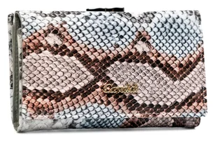 Pojemny portfel damski na karty z motywem wężowej skóry portfel ze skóry naturalnej i skóry ekologicznej Cavaldi, brązowy