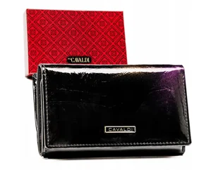 Portfel damski lakierowany PETERSON rfid stop średniej wielkości na zatrzask lakierowany prążkowany skóra naturalna i ekologiczna pudełko prezentowe