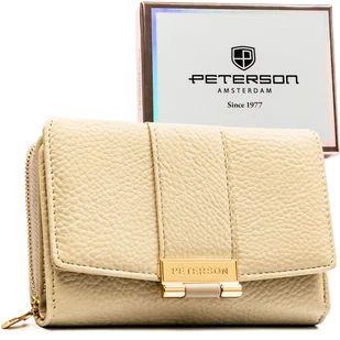 Portfel damski beżowy PETERSON ochrona RFID mały z ozdobnym zapięciem i suwakiem karty gotówka elegancki prezent