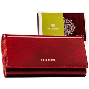 Portfel damski lakierowany elegancki prezent ze skóry naturalnej Peterson Duży portfel damski skórzany Peterson®️ ❇️ Wysokogatunkowe materiały | Wyszyty z dbałością o detale ze wysokogatunkowej lakierowanej skóry naturalnej z solidnymi, metalowymi okuciami. ❇️ Duża pojemność | Portfel oferuje niezwykle pojemne wnętrze, co sprawia, że bez problemu pomieści wszystkie karty, wizytówki, dokumenty i dodatkowe przedmioty, jakie potrzebujesz mieć zawsze przy sobie. ❇️ Klasa i szyk | Wygląd portfela łączy szacunek do ubiegłych lat z nowoczesnymi akcentami. Dzięki temu jest on niezwykle gustowny, ma wyrafinowany charakter i jest przy tym bardzo uniwersalny. ❇️ Antykradzieżowy | Wyposażony w specjalny system antykradzieżowy RFID dla większego bezpieczeństwa Ciebie i Twoich danych.