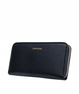 Dzięki przemyślanej konstrukcji i dbałości o detale, portfel ten pomieści wszystkie niezbędne na co dzień przedmioty, takie jak banknoty, bilon, karty, wizytówki oraz dokumenty. ➡️ Jednokomorowy model jest zabezpieczony zapięciem na zamek, co gwarantuje bezpieczeństwo przechowywanych rzeczy. Wnętrze portfela wyściełane jest eleganckim, logowanym materiałem z poliestru, który dodaje mu wyjątkowego charakteru. Portfel wyposażony jest w sześć miejsc na karty, kieszeń na bilon zapinaną na suwak oraz przestronną kieszeń na banknoty lub dokumenty, która może również służyć jako etui na telefon. Na froncie portfela znajduje się delikatne logo PUCCINI w kolorze złotym, które podkreśla jego stylowy wygląd.