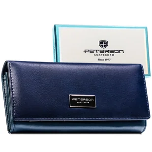 Portfel damski skórzany RFID portmonetka skóra Peterson prezent na święta Stylowy portfel damski Peterson®️granatowy Portfel Peterson® to propozycja dla osób ceniących zarówno elegancję, jak i funkcjonalność. Ten model wyróżnia się starannością wykonania, ponadczasowym designem i doskonałą organizacją wnętrza. Dlaczego warto go wybrać? ❇️ Duży rozmiar zapewniający komfort użytkowania i więcej miejsca na codzienne drobiazgi ❇️ Wzmacniana konstrukcja i solidne przeszycia, które gwarantują trwałość ❇️ Podwójna kieszeń na bilon zapinana na metalowy bigiel – praktyczna i stylowa ❇️ Ochrona RFID zabezpieczająca karty zbliżeniowe przed kradzieżą danych ❇️ Funkcjonalne wnętrze pozwalające pomieścić zarówno gotówkę, jak i karty oraz dokumenty ❇️ Dołączone eleganckie pudełko, idealne na prezent Parametry