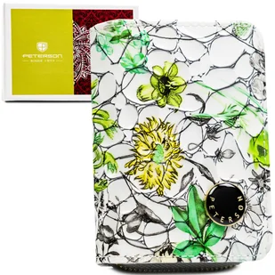 Portfel damski mały Peterson skórzany z ochroną kart RFID ze skóry naturalnej na prezent lakierowany zatrzask suwak w kwiaty biały zielony żółty Mały portfel damski Peterson®️ w kwiaty Portfel PETERSON® to znakomita propozycja dla kobiet ceniących nie tylko elegancki wygląd, ale także praktyczne rozwiązania w minimalistycznym wydaniu. Ten niewielki model mieści wszystko, co niezbędne — bez zajmowania zbędnego miejsca w torebce! 6 kluczowych zalet tego portfela: ❇️ Mały, lekki i poręczny – idealny na co dzień ❇️ Zabezpieczenie RFID STOP – ochrona kart przed kradzieżą danych ❇️ Podwójna kieszeń na bilon – wygodny i szybki dostęp ❇️ Aż 7 miejsc na karty – uporządkowane wnętrze ❇️ Unikalny, kobiecy design – wyróżnia się na tle innych ❇️ W komplecie eleganckie pudełko – gotowy prezent Parametry
