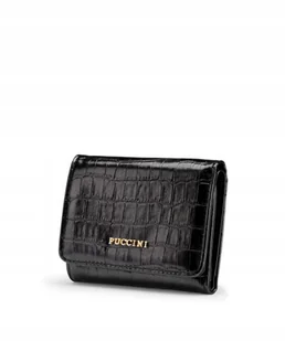 Marka PUCCINI to polska firma z ponad dwudziestoletnią tradycją. Gwarantujemy, że kupując na tej aukcji, otrzymujesz wyłącznie oryginalny towar, prosto od producenta zapewniającego doskonałą jakość i styl. PUCCINI poleca: Mały portfel damski w kolorze czarnym na zatrzask z kolekcji Fashion Collection ⏩ Nasz stylowy portfel damski to doskonały wybór dla każdej kobiety, ceniącej sobie elegancję i funkcjonalność. Wykonany ze skóry ekologicznej o wyrafinowanej fakturze crocco, portfel ten idealnie pasuje do mniejszych torebek, oferując jednocześnie wystarczającą ilość miejsca na najpotrzebniejsze przedmioty.