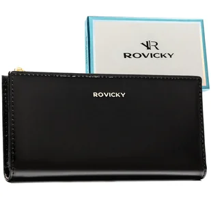 Portfel damski Rovicky ze skóry ekologicznej z ochroną RFID na prezent Portfel damski slim ROVICKY®️ Szukasz portfela, który będzie jednocześnie elegancki, pojemny i wygodny w codziennym użytkowaniu? Ten model ROVICKY® to stylowa portmonetka stworzona z myślą o kobietach ceniących funkcjonalność, jakość i klasyczne wzornictwo. Lakierowane wykończenie nadaje mu luksusowego charakteru, a starannie dopracowany układ wnętrza pozwala zachować idealny porządek.