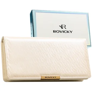 Portfel damski na karty ROVICKY duży na zatrzask i suwak elegancki ochrona RFID na prezent ecru