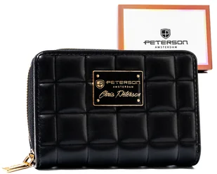 Kompaktowy portfel damski pikowany PETERSON®️ czarny Ten niewielki, ale elegancki portfel damski od renomowanej marki PETERSON® to połączenie funkcjonalności i stylu, idealny dla każdej kobiety ceniącej sobie estetykę oraz praktyczność. Wykonany z trwałej skóry ekologicznej, portfel oferuje wysoką jakość i dbałość o detale, co jest charakterystyczne dla produktów tej marki. Jego elegancki wygląd oraz nowoczesne wykończenie sprawiają, że staje się nie tylko niezbędnym elementem codziennego użytku, ale również modnym dodatkiem do każdej stylizacji. #️⃣ Polska marka z wieloletnią tradycją #️⃣ Wykonany ze skóry ekologicznej o pikowanej fakturze #️⃣ Mały, podwójny portfel o rozbudowanym wnętrzu #️⃣ Zapakowany w firmowe pudełko Parametry