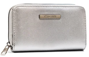 Portfel damski piórnik na suwak z kółkiem do kluczy skóra ekologiczna Cavaldi, srebrny