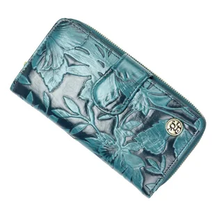Bardzo ładny damski portfel skórzany wysokiej jakości. Model ten jest praktyczny, przeznaczony dla wymagających klientów ceniących sobie jakość i wytrzymałość. Do wykonania portfela wykorzystana została skóra licowa wysokiej jakości o intrygującej teksturze, miła w dotyku. Podszewki uszyte są z bardzo dobrej tkaniny o nowoczesnym wzornictwie i ładnej teksturze.