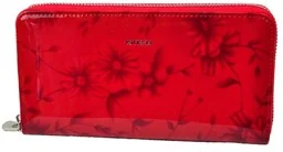 Portfel Damski Skóra Naturalna PATRIZIA Duży Z Metalowym Suwakiem Piórnik Lakierowany FL-119 CZERWONY RFID 19,5 x 10 x 2. 5 [cm] Bardzo ładny damski portfel skórzany wysokiej jakości. Model ten jest praktyczny, przeznaczony dla wymagających klientów ceniących sobie jakość i wytrzymałość. Do wykonania portfela wykorzystana została skóra licowa wysokiej jakości o intrygującej teksturze, miła i ciepła w dotyku. Również podszewki są uszyte z bardzo dobrej tkaniny o nowoczesnym wzornictwie i ładnej teksturze.