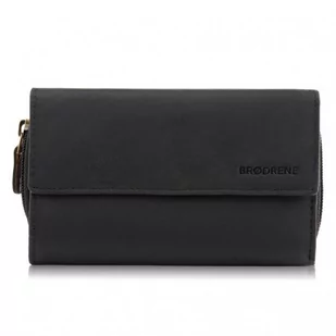 PORTFEL DAMSKI SKÓRZANY CZARNY ZE SKÓRY NATURALNEJ DUŻY POZIOMY BRØDRENE G-89SH/BL