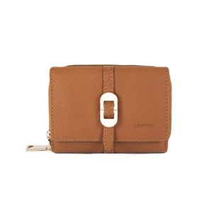 Skórzany, elegancki damski portfel z naturalnej skóry licowej. Nie daj się zwieść niepozornym wymiarom tego portfela: jest on nie tylko poręczny, ale również niezwykle pojemny. Zgrabna forma wykonana z naturalnej skóry licowej chowa pod zapinaną na napę klapą: 5 pionowych przegródek na karty i dokumenty – w tym jedną siatkową na zdjęcia, 3 dodatkowe poziome kieszonki, przegrodę na banknoty, ponadto portfel wyposażony jest w zapinaną na suwak, podwójną kieszeń na drobne.