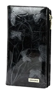 Portfel Damski Skórzany GREGORIO Lakierowany Długi Z Suwakiem Na Zewnątrz BTS-124 CZARNY 19,5 x 10 x 3,5 [cm]