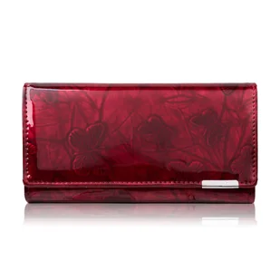 Przemyślana funkcjonalność — pozioma orientacja i większy format: idealny dla kobiet, które potrzebują przestrzeni na banknoty, karty i bilon. Zabezpieczenie technologiczne — wbudowana ochrona RFID, która chroni karty płatnicze przed nieautoryzowanym odczytem. Bogaty układ wnętrza — 8 przegródek na karty, 2 przegrody na banknoty, kieszeń na bilon zamykana na zamek oraz 2 dodatkowe schowki. Stylowy akcent — srebrne okucia i głęboka czerwień lakieru tworzą wyrazisty, a zarazem elegancki look.