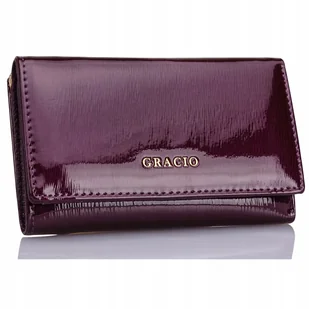 - Skórzany portfel damski GRACIO to esencja luksusu i elegancji, uszyty z wysokiej jakości skóry naturalnej, która została dodatkowo lakierowana, aby nadać mu wyjątkowy połysk.