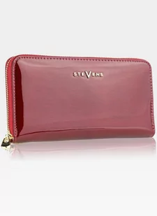 PORTFEL DAMSKI SKÓRZANY LAKIEROWANY STEVENS RFID Czerwona Błyskotka - Czerwone Liście