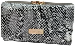 Portfel Damski Skórzany PATRIZIA 14 cm Klamra i Klapka Skóra Naturalna Lakierowany SNR-108 SZARY RFID 14 x 9 x 4 [cm] Klasyczny damski portfel wykonany z najwyższej jakości skóry naturalnej . Skóra tego rodzaju bardzo często wykorzystywana jest do produkcji tapicerki skórzanej, co dobitnie świadczy o jej niekwestionowanej wytrzymałości. Portfel wykonany starannie i perfekcyjnie w najdrobniejszych szczegółach. Model ten jest jednym z najlepszych i najczęściej używanych portfeli damskich. Jego rozmiary są dobrane w taki sposób, aby można było swobodnie ulokować zarówno banknoty jak i powszechnie używane dokumenty.