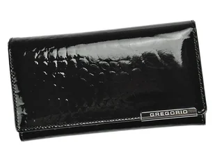 Budowa: portfel zamykany na zatrzask 4 kieszenie na karty, w tym jedna z przezroczystym okienkiem jedna szeroka kieszeń pod klapką trzy przegrody na banknoty...