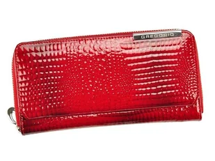 Portfel damski na karty skórzany PETERSON lakierowany brokatowy pionowy na zatrzask i suwak rfid stop czerwony