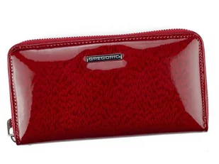 Mały portfel damski skórzany czerwony LORENTI rfid elegancki lakierowany pionowy na zatrzask i suwak