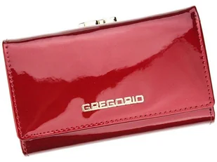Mały portfel damski czerwony PETERSON skórzany lakierowany elegancki na zatrzask i bigiel