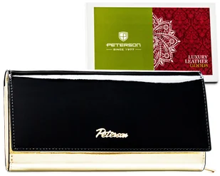 Portfel damski Peterson® czarno-złoty #️⃣ Polska marka | Produkt polskiej marki Peterson®, która dzięki wieloletniemu doświadczeniu na rynku galanterii skórz...